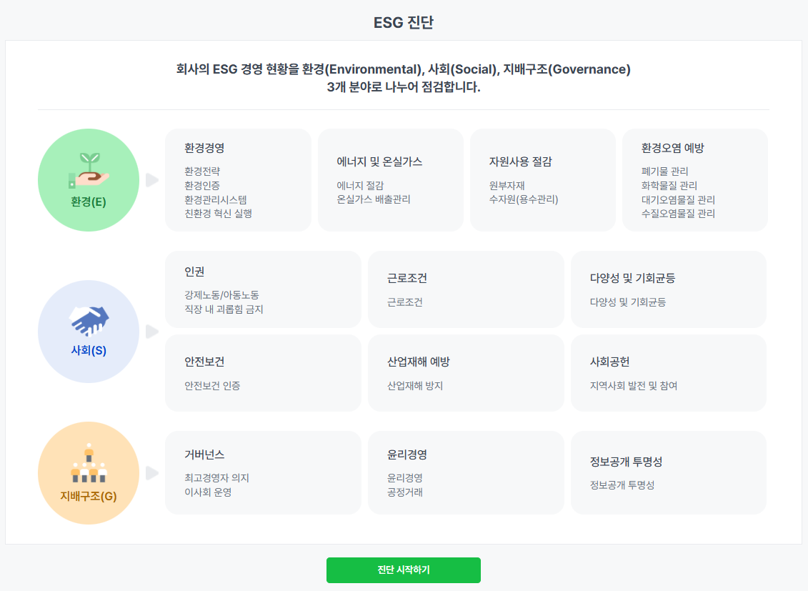 For SMEs within industrial complexes, the diagnosis is linked to free ESG consulting and professional training programs.